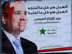 السيسي ملطخ بالدماء وينزف ..لائحات مشوهة