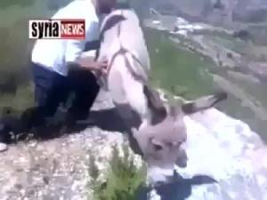 فيديو لشاب يرمي حماراً عن سفح جبل مرتفع يثير جدلاً