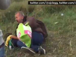 اللاجئ السوري الذي أسقطته مصورّة مجرية مع ابنه يوج