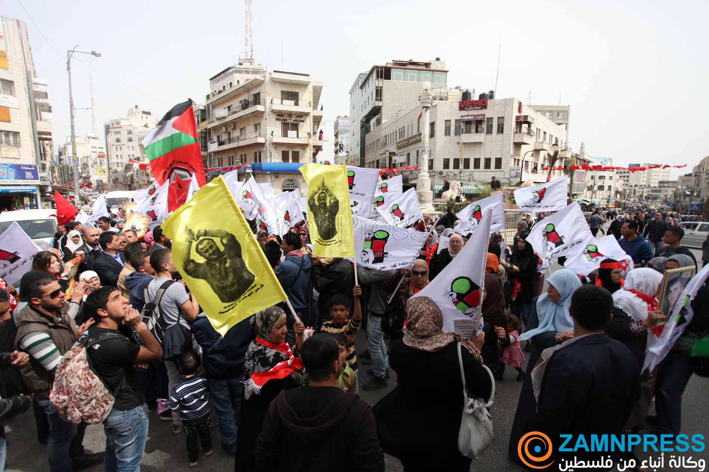 جابت مسيرة نسوية دعى لها اتحاد لجان العمل النسائي الفلسطيني شوارع مدينة رام الله تهتف بحرية الاسرى المضربين عن الطعام في سجون الاحتلال الاسرائيلي، ويأتي ذلك في ذكرى يوم المرأة العالمي. عدسة *رأفت حج علي*
