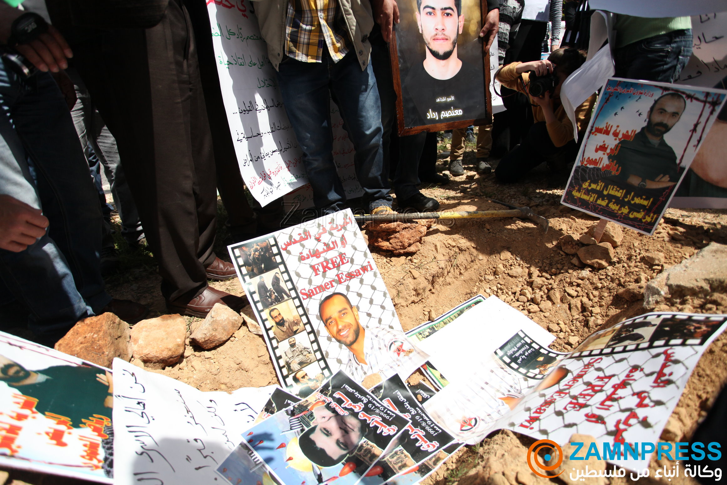 أهالي الأسرى يحفرون قبراً لأبنائهم قبالة مقر المقاطعة في رام الله