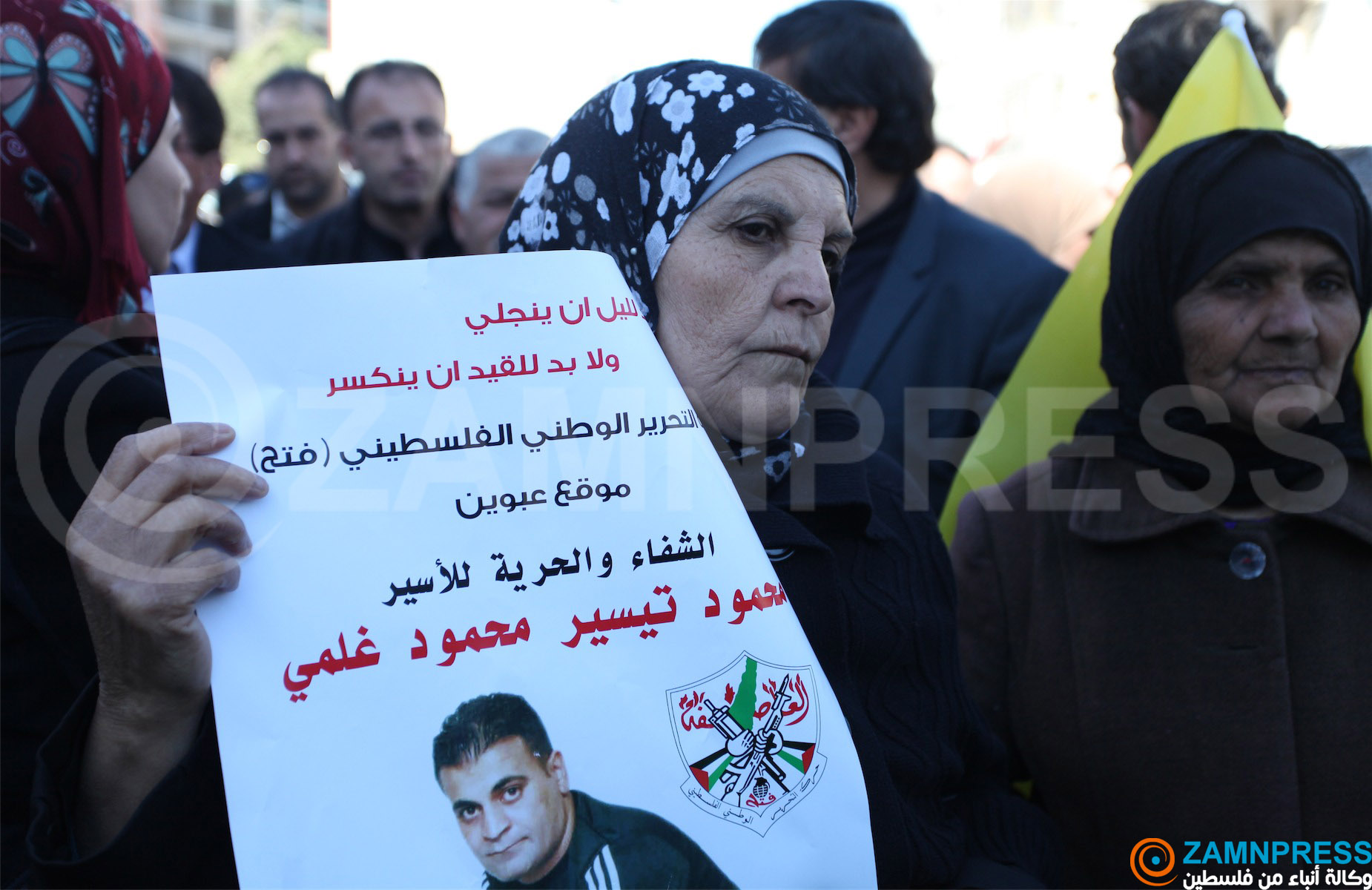 اعتصم عدد من أهالي بلدة عبوين وسط مدينة رام الله ظهر اليوم تضامناً مع الأسير "محمود غلمي" المريض في سجون الاحتلال الإسرائيلي.