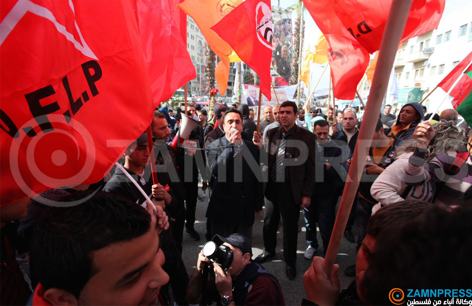 نظمت اليوم الجبهة الديمقراطية والمبادرة الوطنية مسيرة في مدينة رام الله للدعوى الى وقف المفاوضات الجارية مع اسرائيل . عدسة حمزة شلش