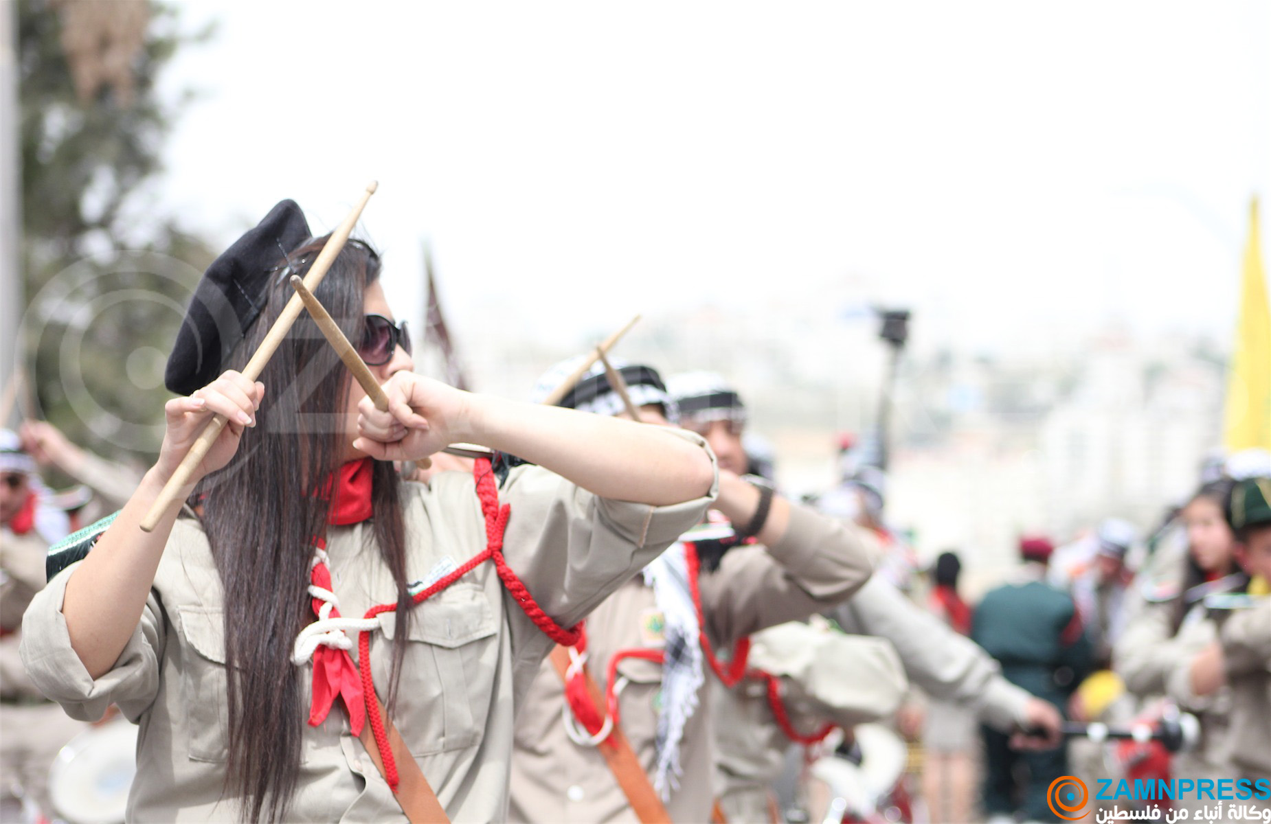 خرجت اليوم ٢١ فرقة من الكشافة جابت شوراع رام الله وأدت عروضاَ خاصة، وذلك في إطار احتفالات "سبت النور" . عدسة حمزة شلش