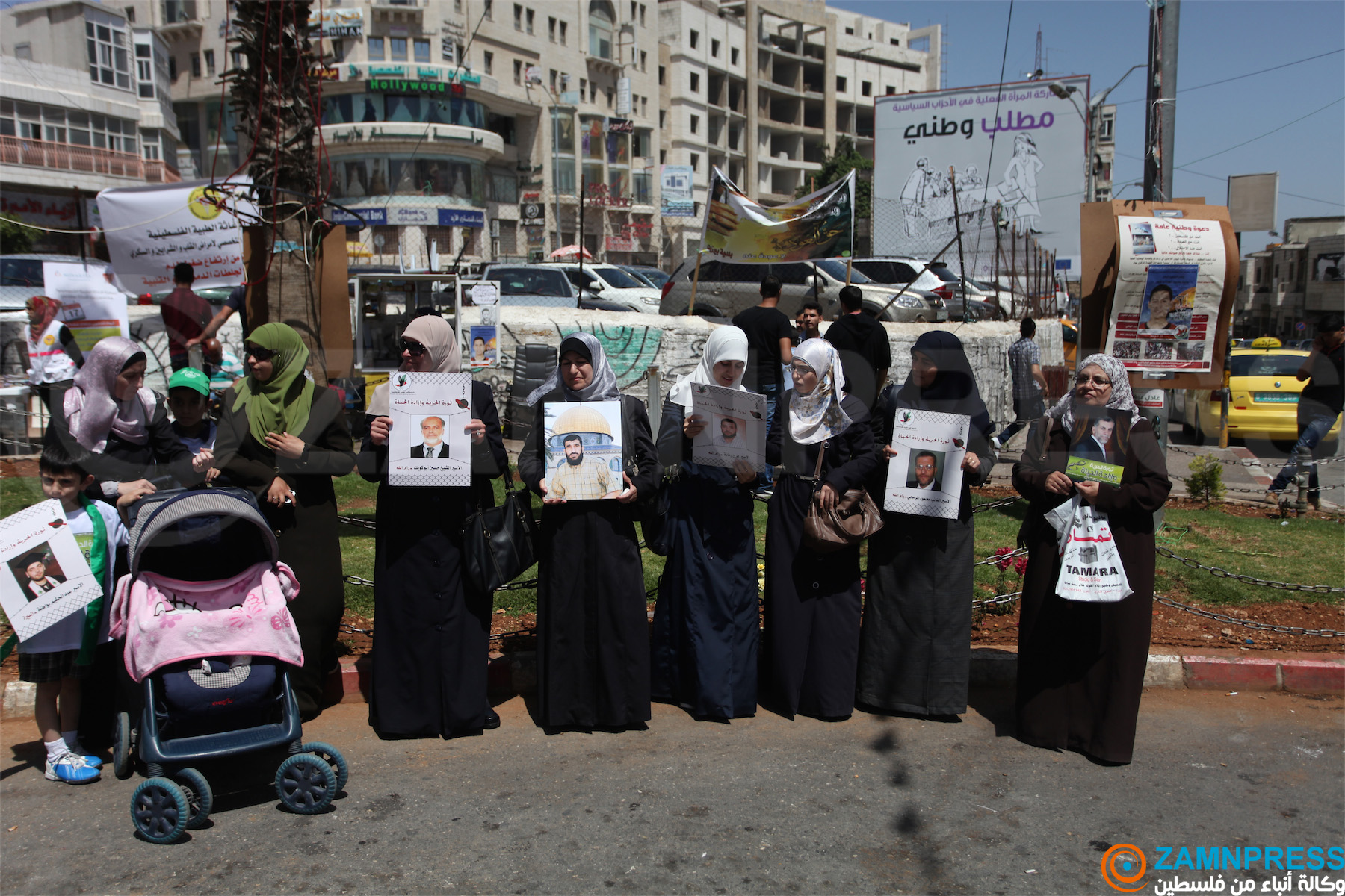 اعتصم اليوم عدد من اهالي الاسرى في سجون الاحتلال وسط مدينة رام الله  . عدسة حمزة شلش