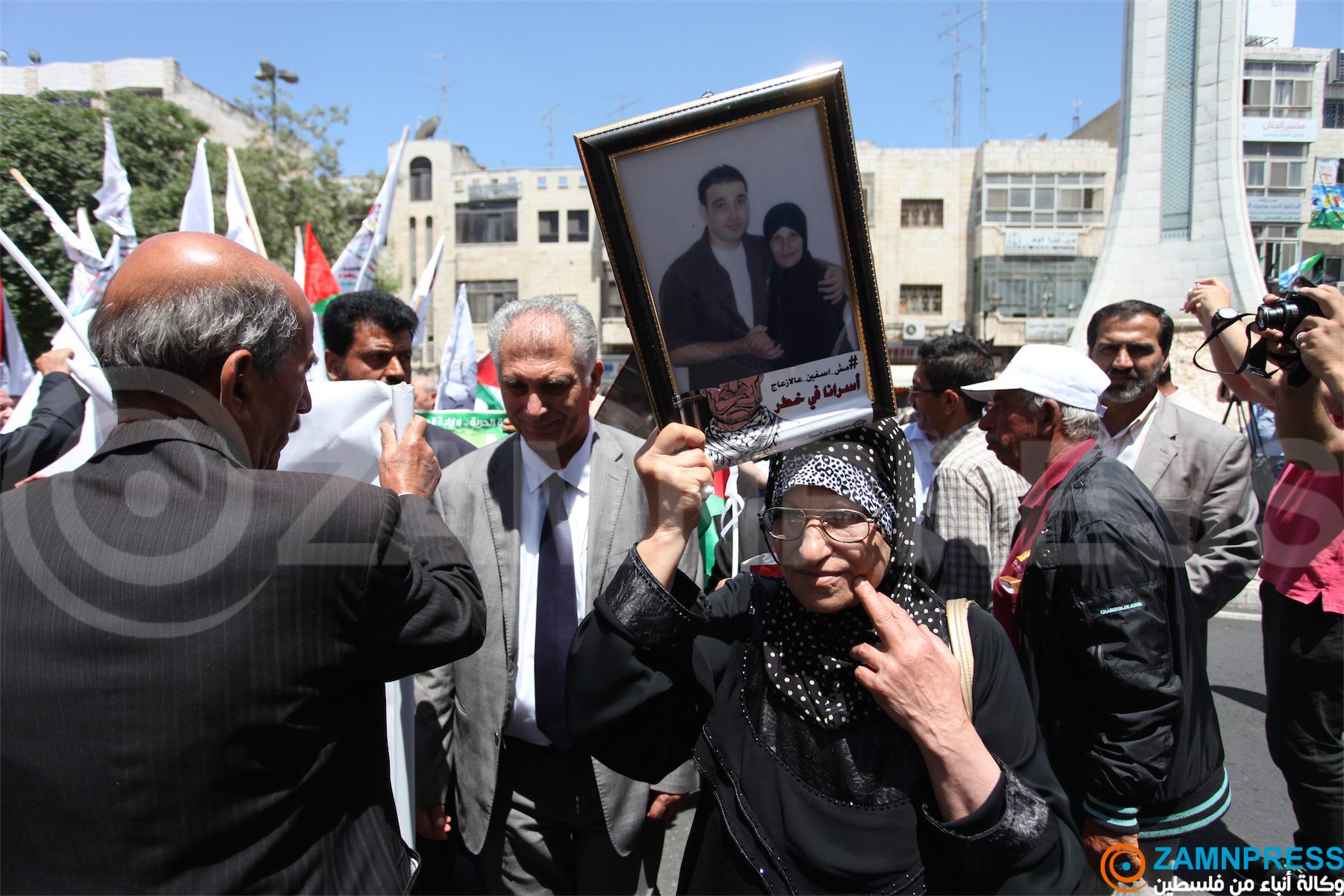 وسط مدينة رام الله مسيرة دعماً للاسرى المضربين عن الطعام