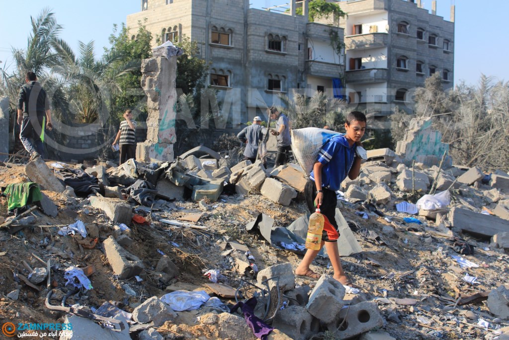 آثار الدمار على منازل المواطنين بعد قصف طائرات الاحتلال في مدينة خانيونس جنوب القطاع . عدسة : مهند قديح .