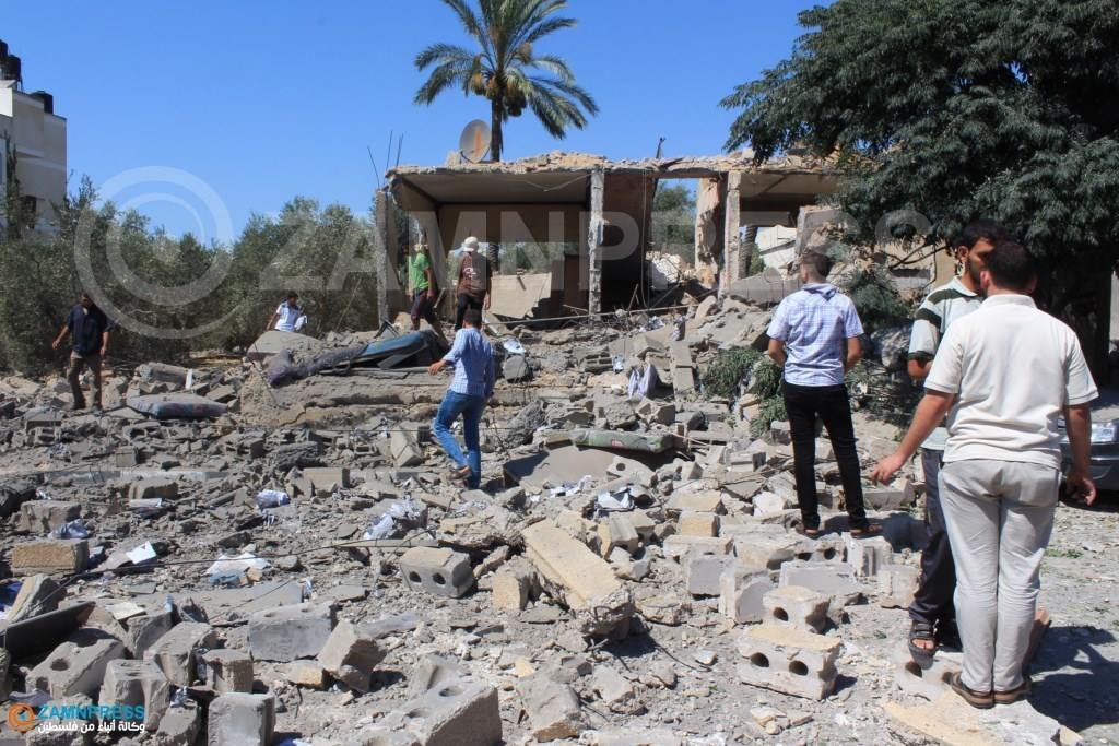 صور لاثار  القصف الذي خلفته  طائرات الإحتلال على منزل عائلة  أبو دقة شرق خان يونس . عدسة مهند قديح