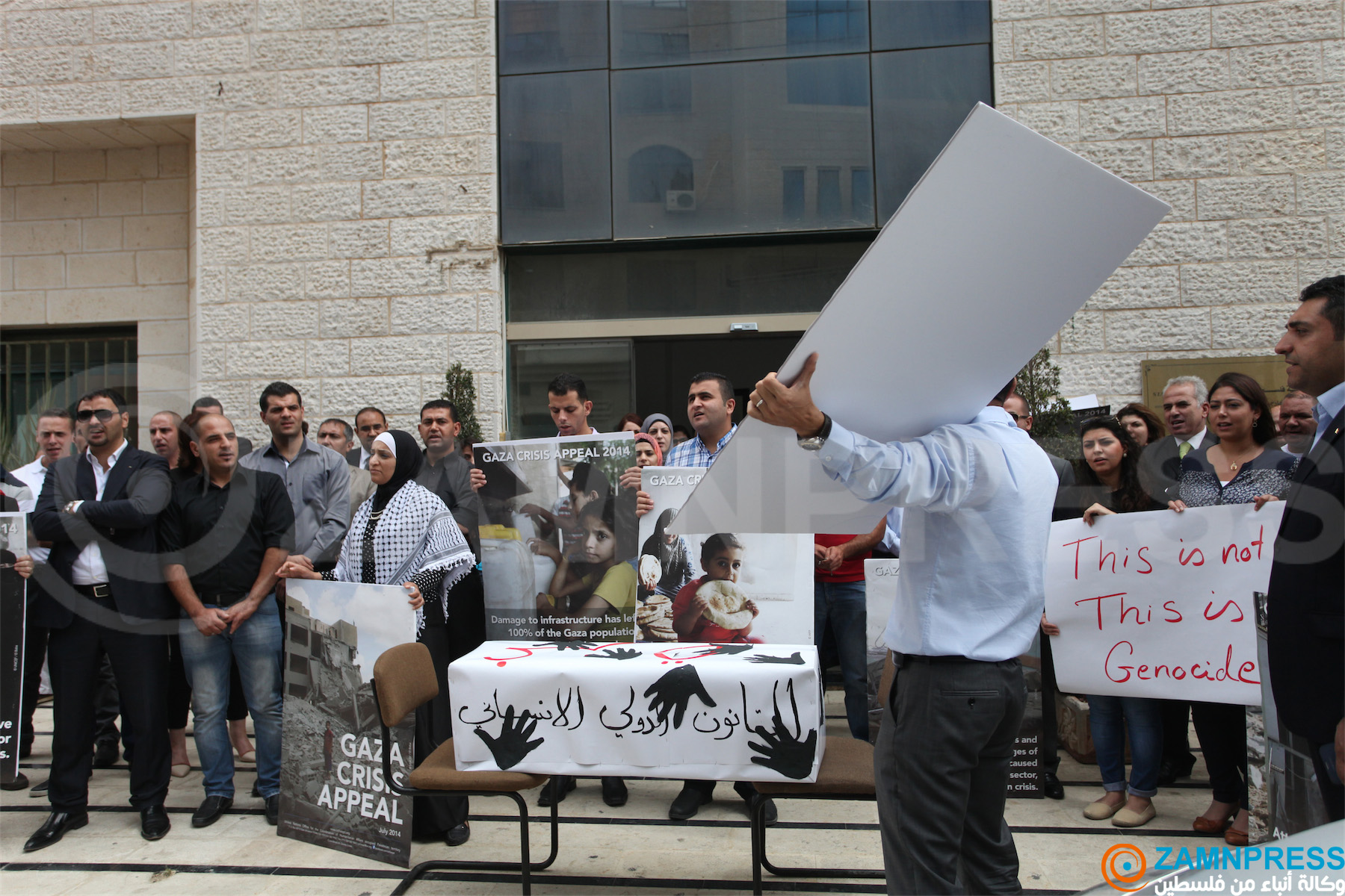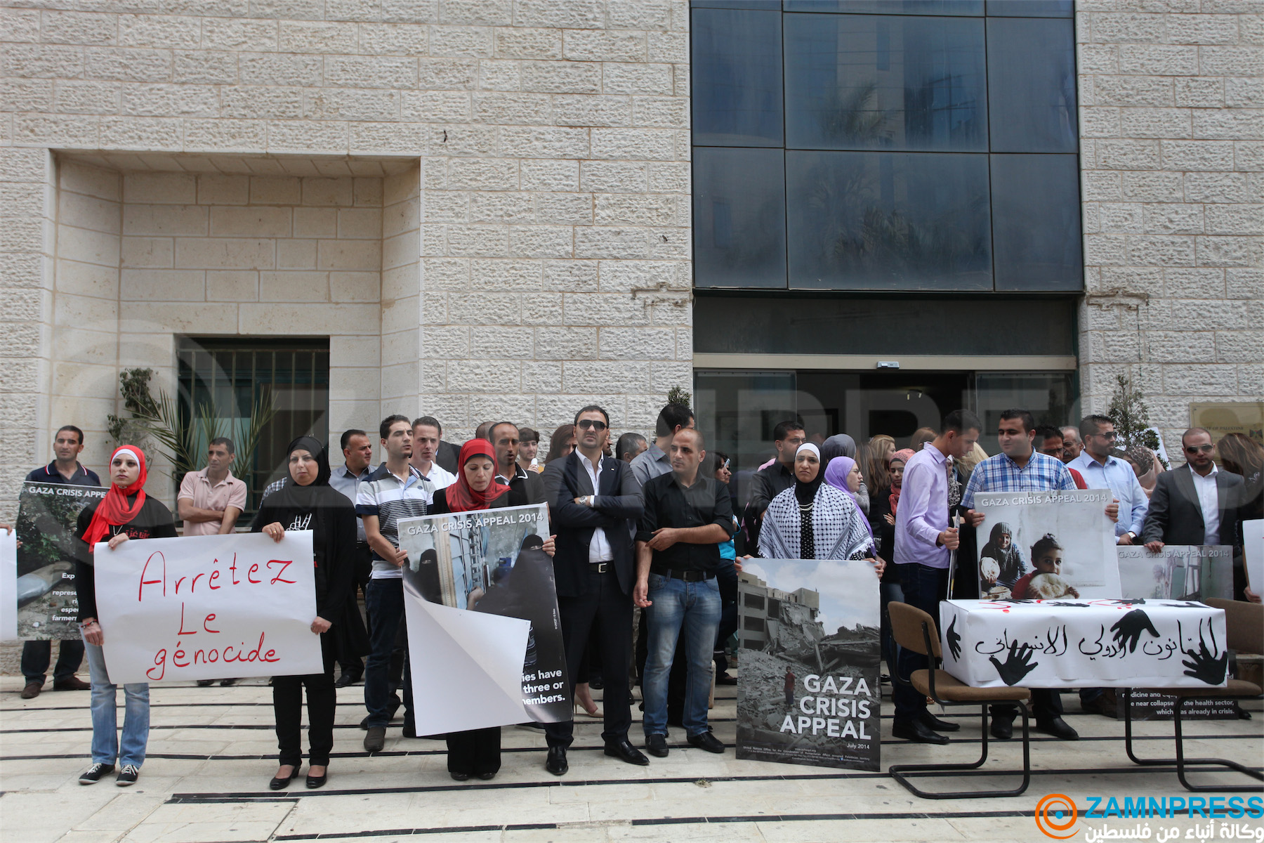 اعتصم اليوم العاملين في وزارة الخارجية امام الوزارة وذلك تنديدا باستمرار الحرب على غزة وارتكاب المزيد من الجرائم بحق المدنين في القطاع . عدسة حمزة شلش