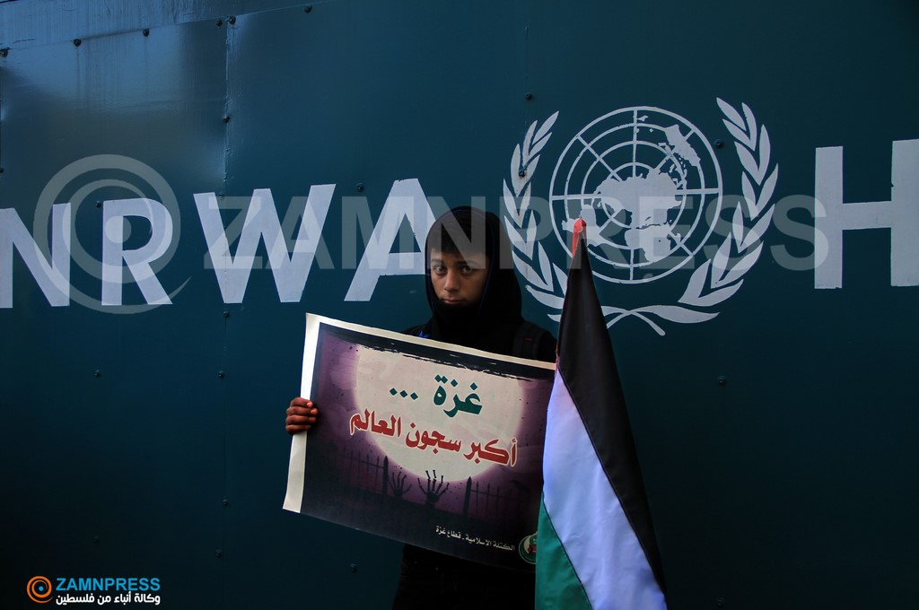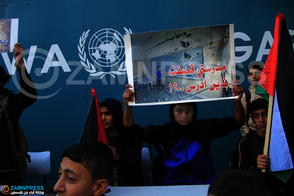 اعتصام لطلبة المدارس أمام مقر وكالة الغوث بغزة احتجاجاً على تأخر الإعمار