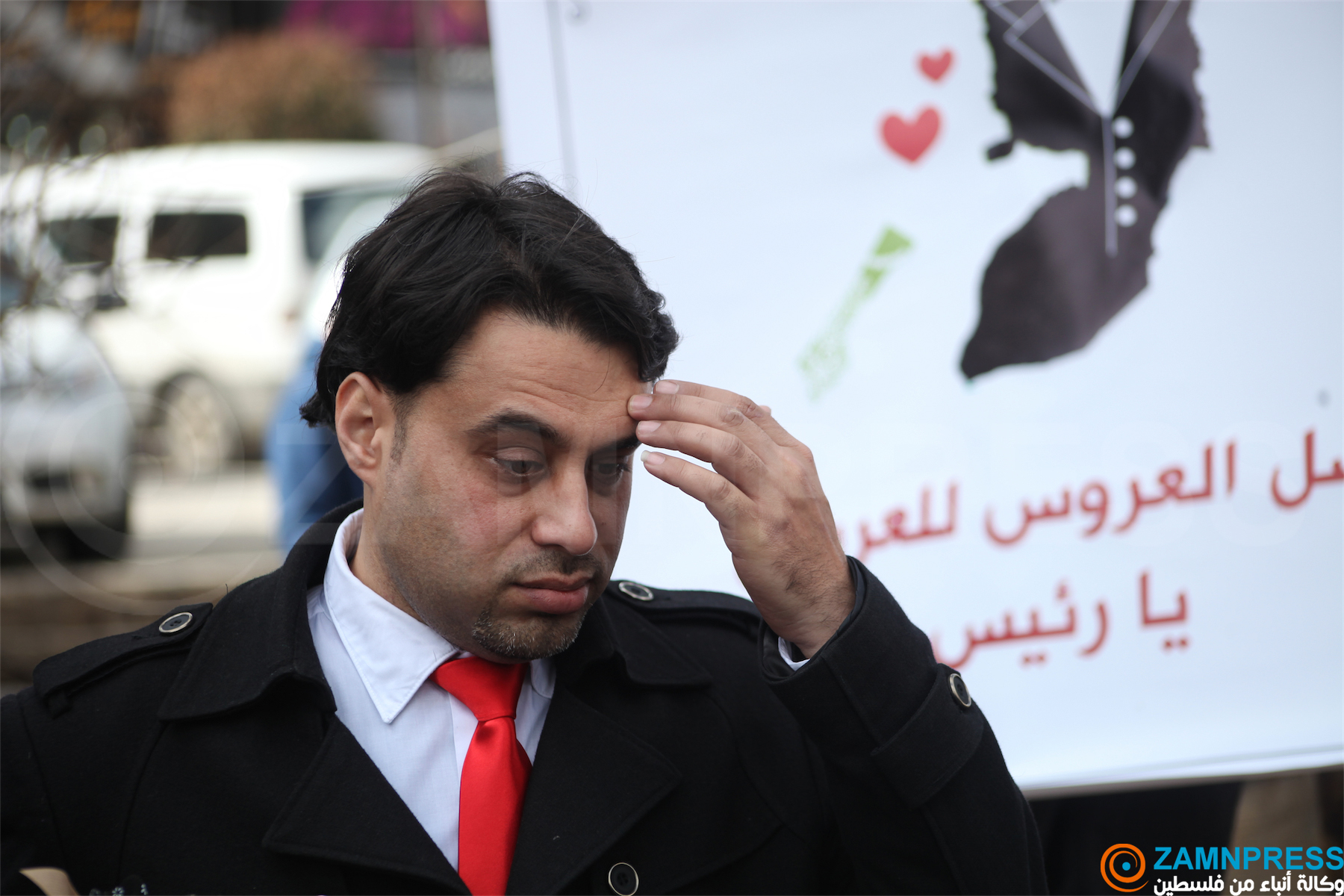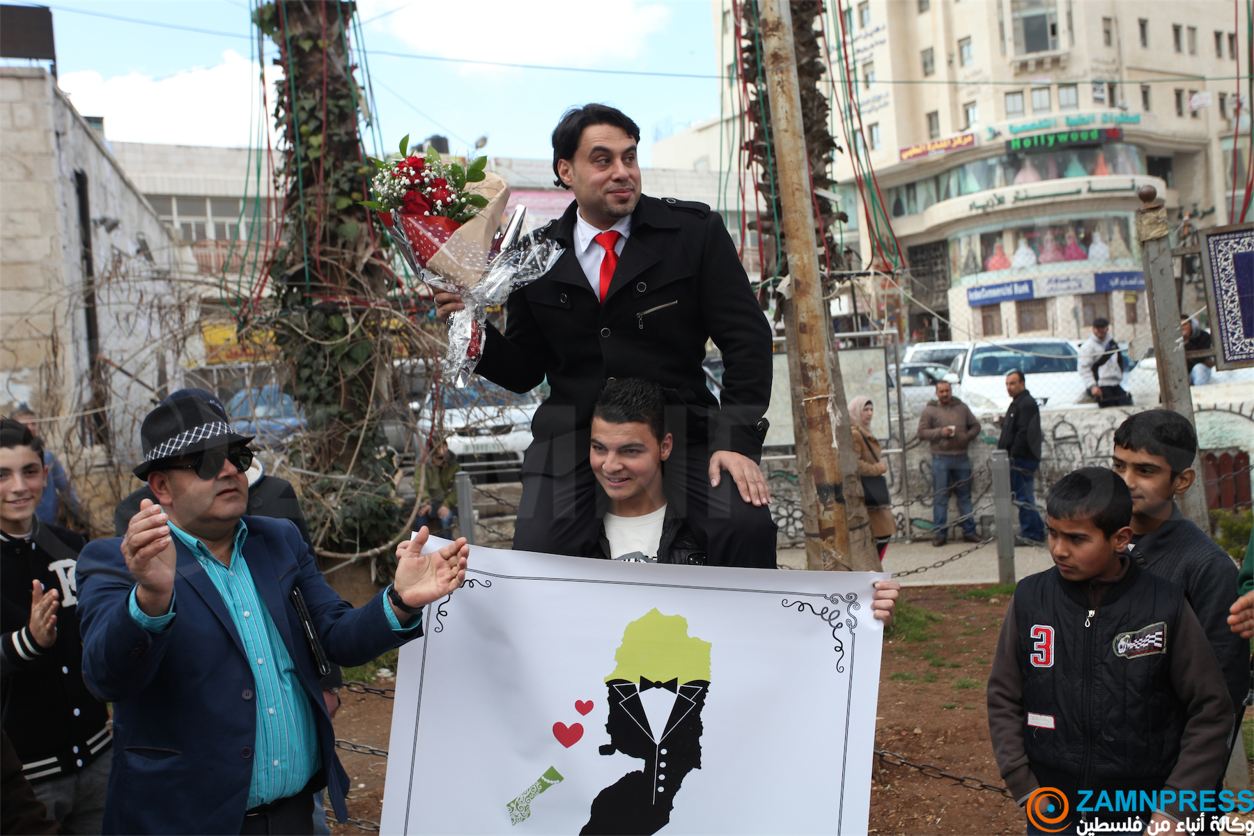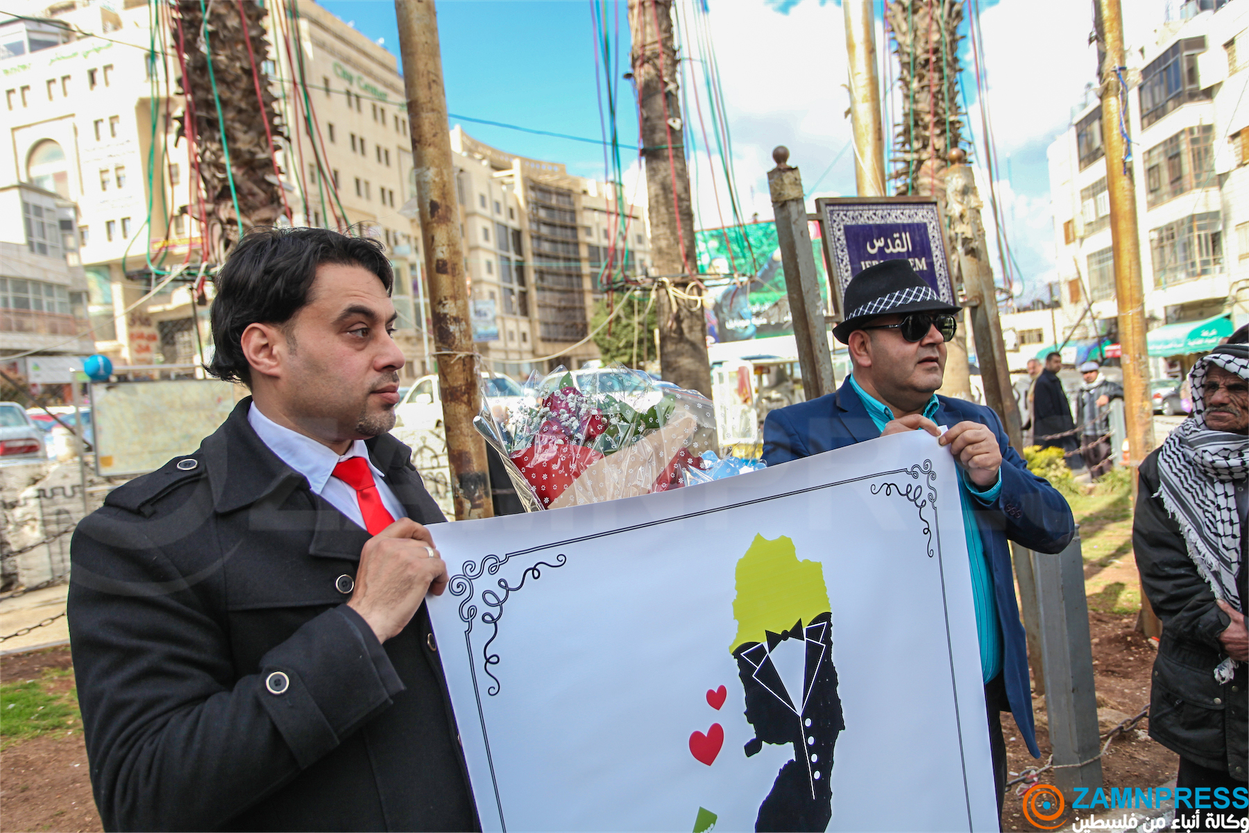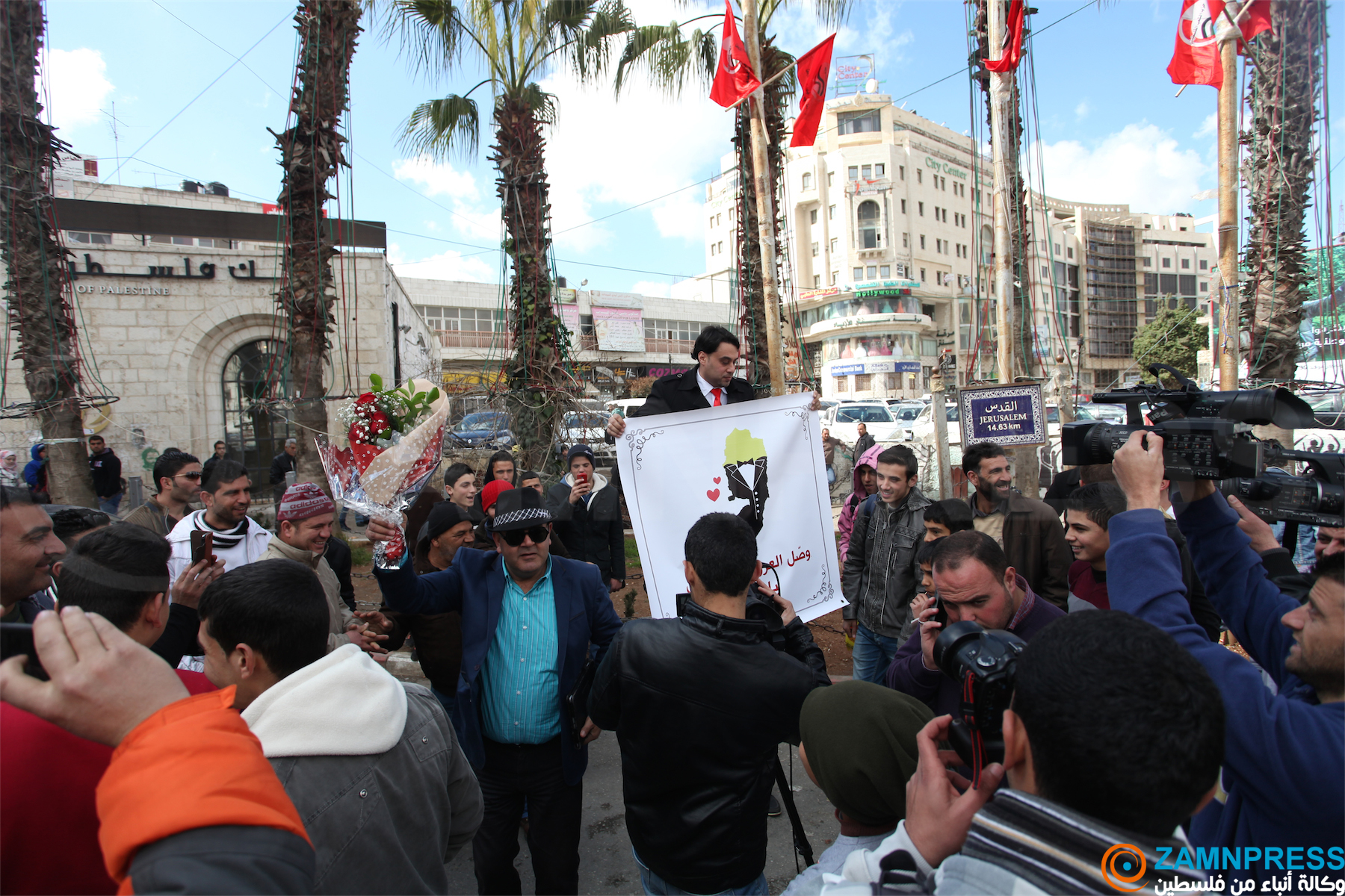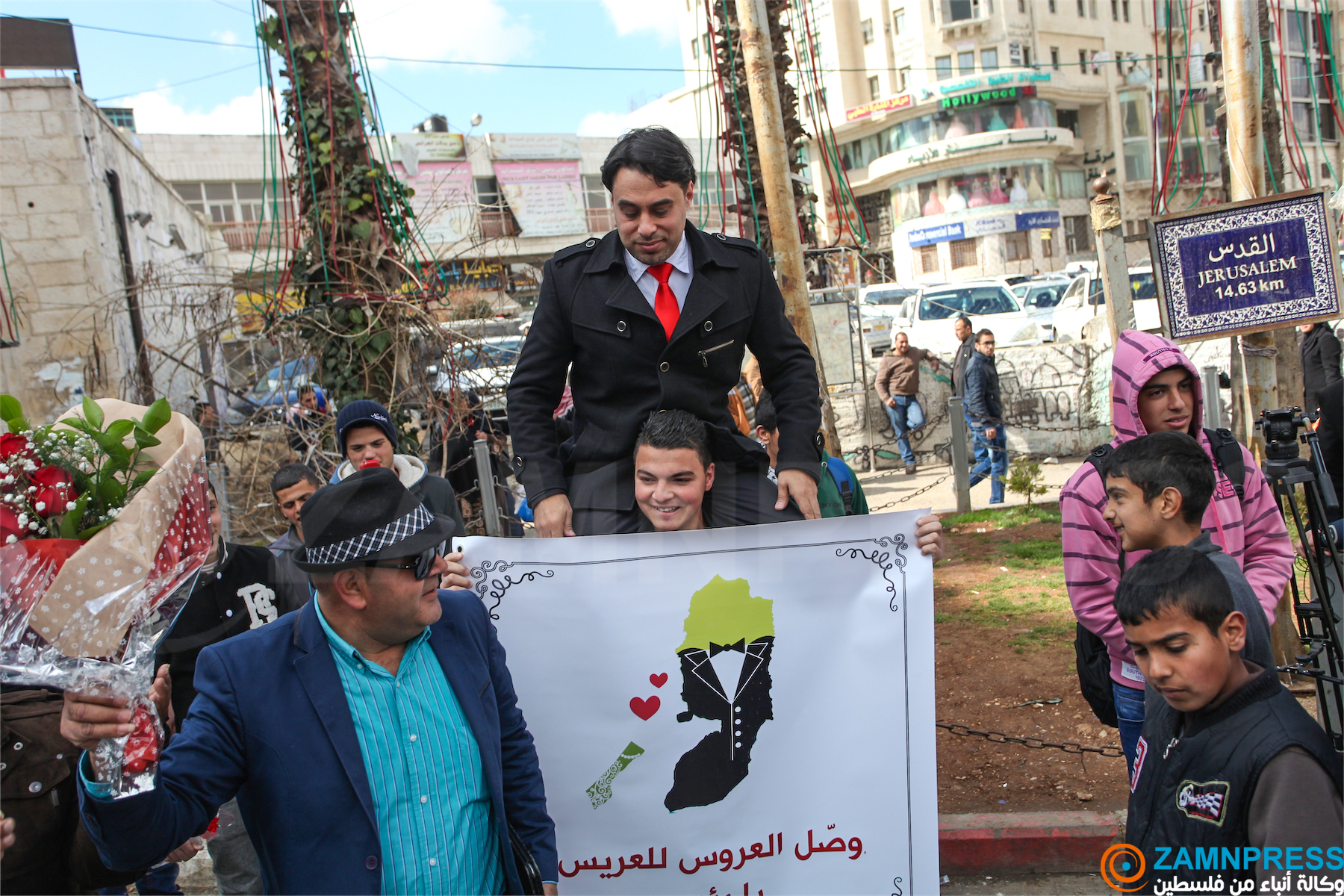 عريس يقف وسط مدينة رام الله ويطالب الرئيس بجلب عروسه من غزة