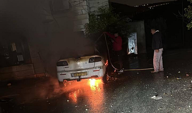 مستوطنون يحرقون مركبات ويخطون شعارات عنصرية في عين يبرود