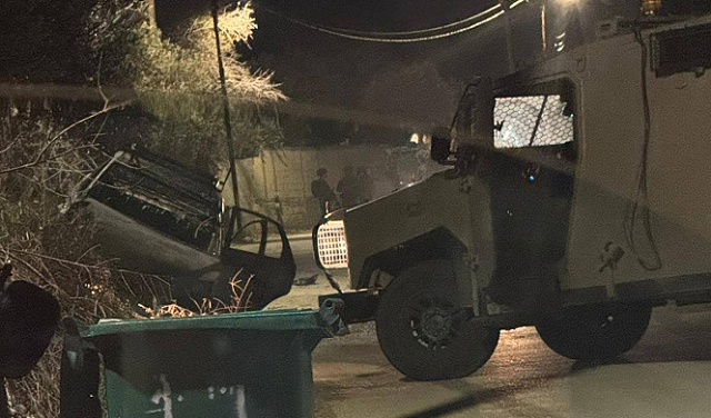 وأظهر توثيق مصور، اشتعال النار بالمركبة بعد انقلابها جراء تدهورها بعد تعرض وإصابة مستقليها برصاص الاحتلال.