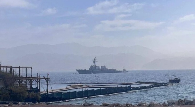 زمن برس، فلسطين:  أعلن الجيش الإسرائيلي عن وصول مدمرة عسكرية أمريكية إلى ميناء إيلات.