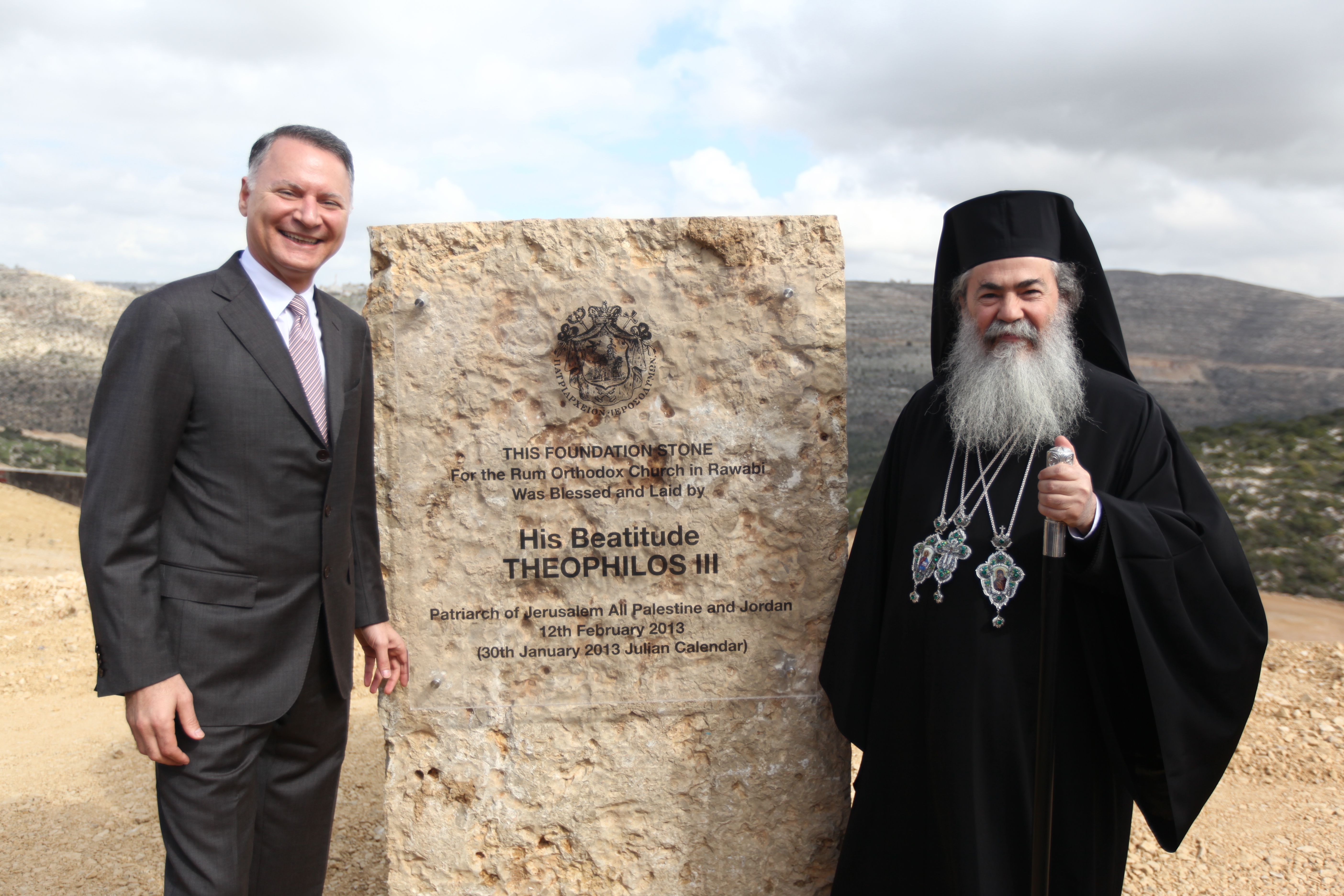 قام غبطة البطريرك كيريوس كيريوس ثيوفيلوس الثالث، بطريرك المدينة المقدّسة وسائر أعمال فلسطين والأردن، بوضع حجر الأساس لكنيسة الروم الأرثوذكس، وهي الكنيسة الأولى، في مدينة روابي، والتي سيتم انشاؤها على قطعة أرض خُصِّصَت لهذا الغرض حسب المخطط الهيكلي للمدينة، وذلك بحضور القنصل العام اليوناني في القدس سوتيريوس أثناسيّو، ووزير شؤون القدس المحافظ عدنان الحسيني، وبعض أعضاء ورئيس اللجنة العليا لمتابعة شؤون الكنائس في فلسطين وعضوّ اللجنة التنفيذية لمنظّمة التحرير الفلسطينية حنا عميرة، ومستشار الرئيس لشؤون العلاقات المسيحية زياد البندَك، ولفيف من أعضاء المجمَع المقدّس لبطريركية الروم الأرثوذكس المقدسيّة خلال زيارتهم للمدينة. واطّلع الوفد على آخر مستجدات البناء، وزاروا مركز المدينة التجاري وأحياءها السكنية، ومرافقها العامة المتعددة الجاري بناؤها. وسوف تتوسّط الكنيسة الأحياء السكنية في المدينة، وتتميّز بإطلالتها الجميلة على التلال والوديان المحيطة.