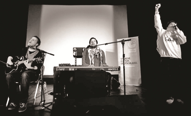 لم تخلُ الحفلة من الصخب ونبرة الاحتجاج ومظاهر الغضب في تناول حال الشعب الفلسطيني في أماكن وجوده، وأحياها الفنانون الثلاثة المقبلون من فضاءات جغرافية متنوعة: الأول من رام الله ويطْلق على نفسه: «المقاطعة»، والثاني «ولاء» الآتي من حيفا، والثالث «الفرعي» المقيم في عمّان. وتضمّنت الحفلة أقساماً ثلاثة، مدة كلٍّ منها نصف ساعة، قدّم الفنانون فيها رؤاهم المنبثقة من تجاربهم الخاصة في المناطق التي يقيمون فيها.