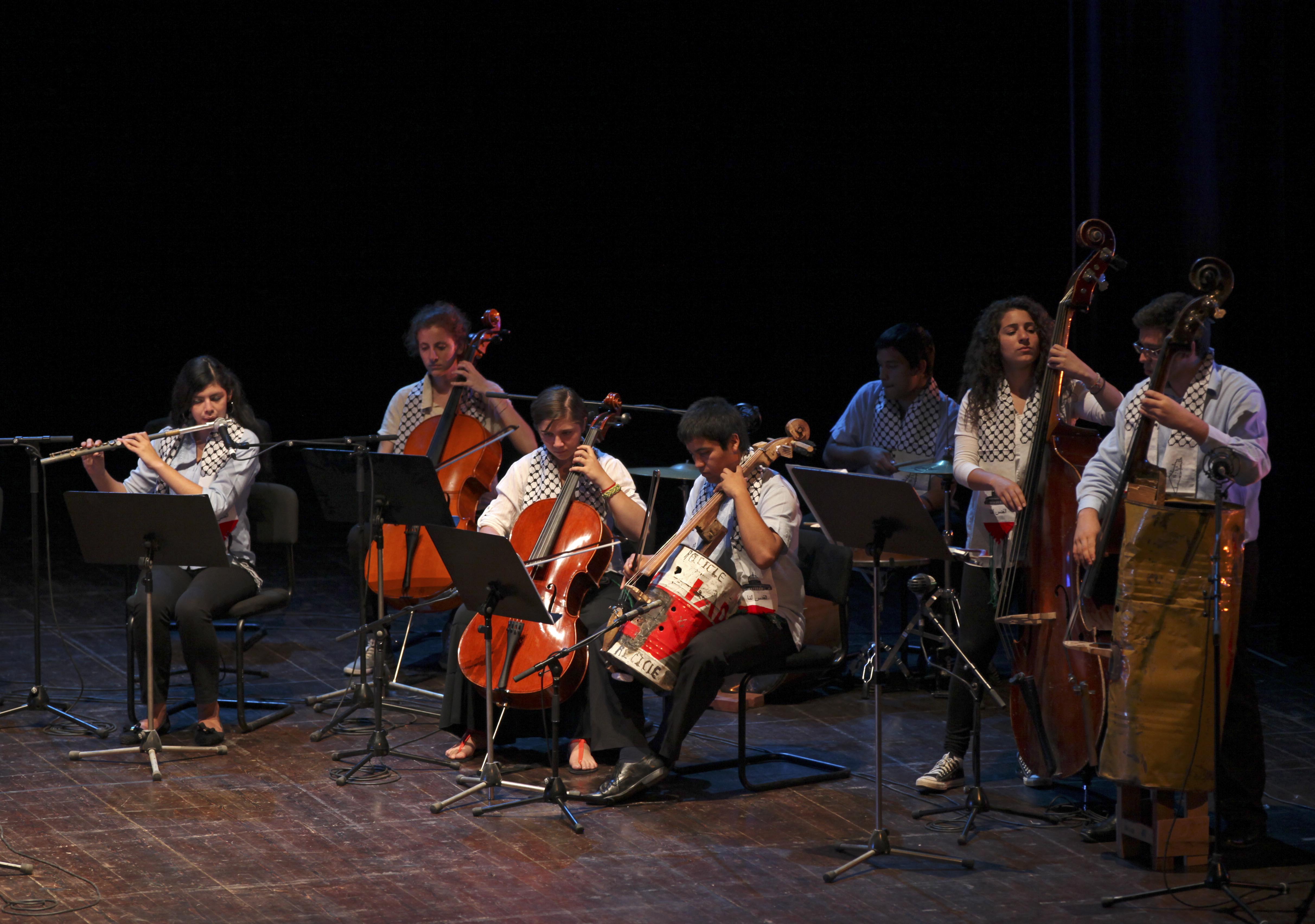 وراحت الفرقة القادمة من البرغواي وبمشاركة طلاب معهد ادوارد سعيد للموسيقى، يعزفون مقطوعات لاتينية وشرقية كانت نتاج ورشة عمل مشتركة مع المعهد استمرت لمدة ثلاثة أيام، فصدحت موسيقى بنت الشلبية بتوزيع جديد.