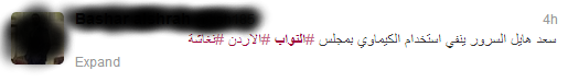 تداول مستخدمون أردنيون على فيسبوك وتوتير صوراً وكتبوا منشورات فكاهية تعليقاً على حادثة إطلاق النار داخل مجلس النواب الأردني اليوم.