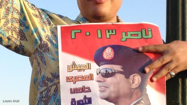 ويشبه أنصار السيسي وزير الدفاع، بالرئيس المصري الراحل جمال عبد الناصر ويرون فيه "زعيم الأمة الجديد" والرجل القوي الذي تحتاجه مصر في هذه المرحلة الصعبة" ويغدقون عليه بالإطراء والشكر لكونه "من خلص مصر من الإخوان المسلمين".