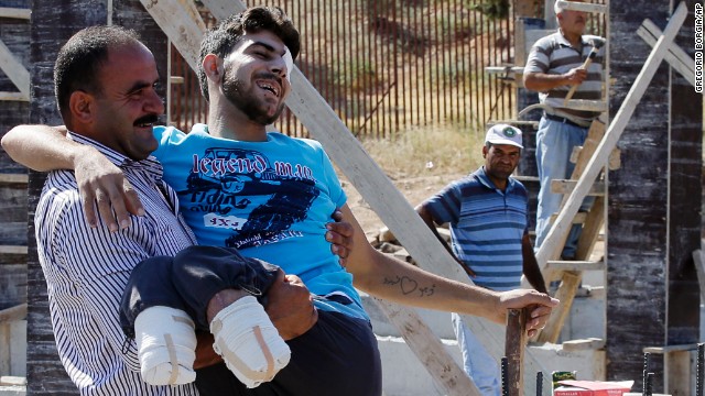مقاتل من الجيش الحر بترت ساقه خلال معارك مع قوات النظام السوري.