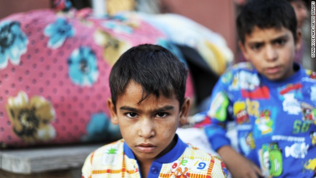 أطفال يبدو عليهم التعب خلال رحلة لجوئهم من سوريا الى تركيا.