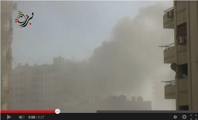 دمشق: نشر اليوم الجمعة فيديو من قبل نشطاء سورييين على يوتيوب يظهر ما يزعم أنه استهداف برزة بدمشق بالطيران الحربي، وهذه ليست المرة الأولى التي يتم فيها نشر فيديو لاستهداف برزة بدمشق .