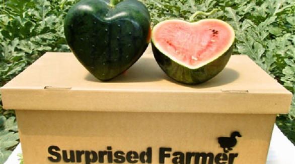 تمكن المزارع الياباني هيروتشي كيمورا من إنتاج بطيخ على شكل قلب، والجميل أن مذاقها حلو كشكلها، كما يقول زبائنه.