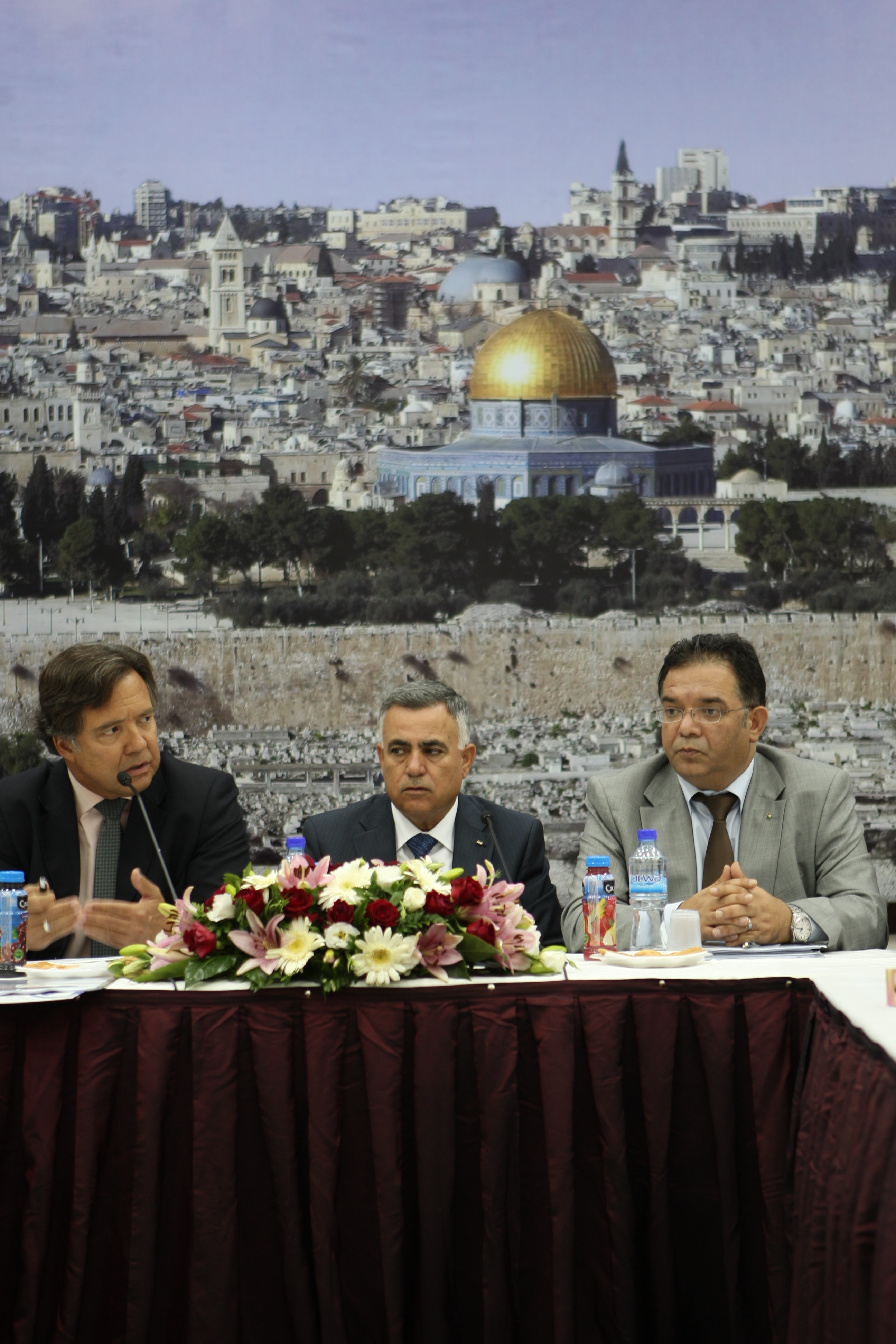 وافتتح رئيس ديوان الرئاسة الدكتور حسين الأعرج الجلسة الذي بدوره يتابع سير التطورات في هذا المشروع و الذي يعتبره من أهم المشاريع لما له دور من تخفيف معاناة السكان لأهلنا في قطاع غزة و الذي و صل إلى حد الكارثة المائية نتيجة التلوث للخزان الجوفي حيث أن ما يضخ من هذا الحوض لا يصلح للاستخدام الآدمي و كان السبب الرئيس في تفشي بعض الأمراض لدى السكان في القطاع، و ذكر الأعرج أن السيد الرئيس أعطى تعليماته لكافة الجهات للعمل على إنجاح المشروع و بذل كافة الجهود لإدخاله حيز التنفيذ و بالسرعة الممكنة.