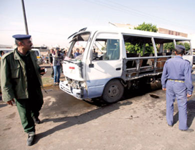 سيناء: أصيب عشرة من جنود الامن المركزي المصري اليوم الجمعة بتفجير عبوة ناسفة بحافلة كانوا يستقلونها في رفح المصرية.