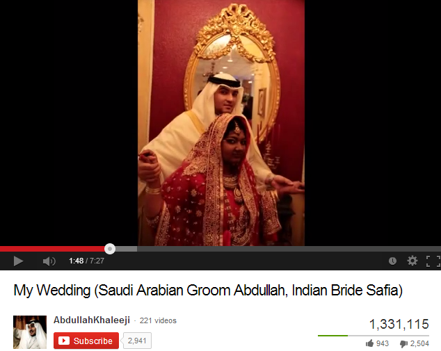 تكللت علاقة حب ربطت بين شاب سعودي وفتاة هندية بالزواج، وقد نشر فيديو قصير بعنوان "زفافي .. العريس السعودي عبدالله والعروس الهندية صافيا" عبر يوتيوب استقطب أكثر من مليون مشاهدة، كما نقل موقع 24 الإماراتي.