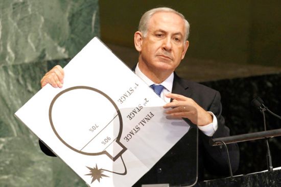 لم تجتز ايران هذه السنة الخط الذي’رسمه نتنياهو في خطابه العام الماضي، والذي عرض لاحقا بانه مراكمة 250 كيلوغراما من اليورانيوم المخصب الى مستوى 20 في المئة (كمية تكفي لانتاج قنبلة نووية واحدة، بعد التخصيب الى مستوى نحو 90 في المئة). حتى الان راكمت نحو 190 كيلوغراما. ولكن التقارير الاخيرة للوكالة الدولية للطاقة الذرية تفيد بان الايرانيين وجدوا التفافا على الخط. فتركيب أجهزة طرد مركزي أسرع للتخصيب، قصر المسافة نحو انتاج القنبلة، وطرح تخوفا لدى أجهزة الاستخبارات في اسرائيل وفي الغرب، بانه في حالة أن تقرر ذلك يمكن لايران أن تتقدم الى الامام في غضون أشهر قليلة، وأن الاستخبارات من شأنها أن تلاحظ التغيير فقط بعد أن يكون الاوان قد فات.