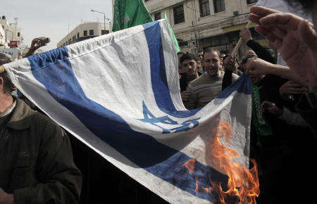 وعندما حاول عدد من المشاركين في هذه المظاهرة حرق العلم الإسرائيلي، سارع أعوان الأمن الذين انتشروا بكثافة في المنطقة، إلى منعهم من ذلك، حيث سحبوا منهم العلم الإسرائيلي وحالوا دون حرقه، بحسب ما أفادت وكالة يونايتد برس انترناشونال.