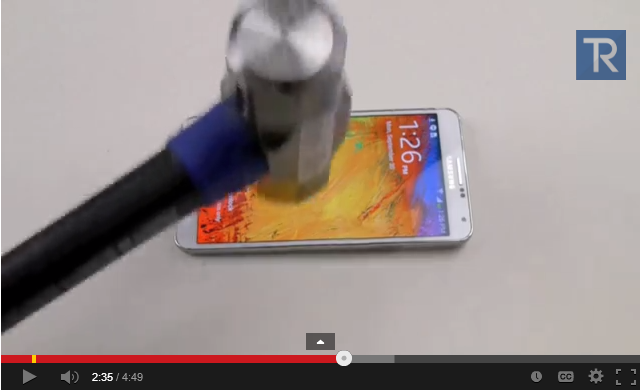 بالفيديو ..جالاكسي نوت 3 يتحدى السكين والمطرقة!!