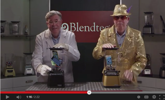 وقدمت الشركة دليلاً على متانة خلاطاتها من خلال طحن مجموعة مؤلفة من 5 هواتف "آي فون 5 أس" و"آي فون 5 سي" بألوان مختلفة مصنوعة من البلاستيك، بالإضافة إلى نموذج ذهبي من نفس الهاتف، كما أورد موقع 24 الإماراتي.