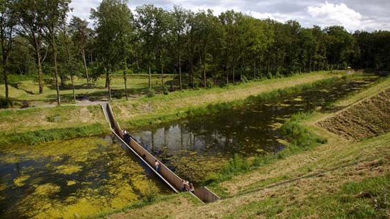 يكسر هذا الجسر كل القواعد المتبعة، حيث يشق طريقه داخل الماء وليس فوقها، وتم تصميمه من قبل المهندس المعماري وون زهويي، وهو على شكل خندق يمر الزوار بداخله، وتشكل جدرانه سد يمنع وصول الماء إلى داخله.