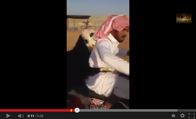 بالفيديو ..سعودي يصحب خروفه بجولة على الدراجة.. قبل ذبحه!!