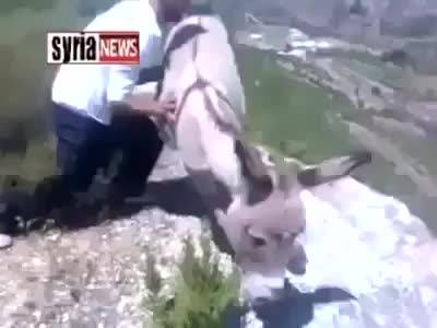فيديو لشاب يرمي حماراً عن سفح جبل مرتفع يثير جدلاً على فيسبوك