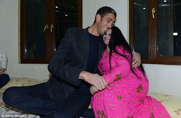 اسطنبول: عقد أطول رجل في العالم يوم أمس قرانه على شابة سورية بعد رحلة بحث دامت لسنوات للعثور عن شريكة العمر المناسبة، ورغم أن عروسه بالكاد تصل إلى خصره، يقول سلطان كوسين (30 عاما) أنه سعيد باختياره وسيتمكن أخيراً من ممارسة حياة عائلية طبيعية، وفقاً لموقع " إل بي سي إنترناشيونال".