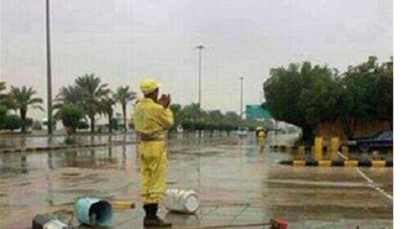 ونشر موقع 24 الإماراتي صورة لعامل نظافة على ما يبدو في الإمارات، رفع يديه إلى السماء داعياً ربه غير مكترثٍ بالعواصف والرياح العاتية التي جلبتها الأمطار الغزيرة، ولم يهتم لما يفعله الآخرون للاحتماء واختار التوجه إلى الله بالدعاء.