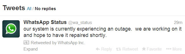 وقامت الشركة عبر حسابها الخاص على موقع تويتر بتأكيد الخبر قائلةً إن" نظامنا يعاني من حالة انقطاع، ونحن نعمل على إصلاح ذلك، نأمل أن يتم ذلك قريباَ".