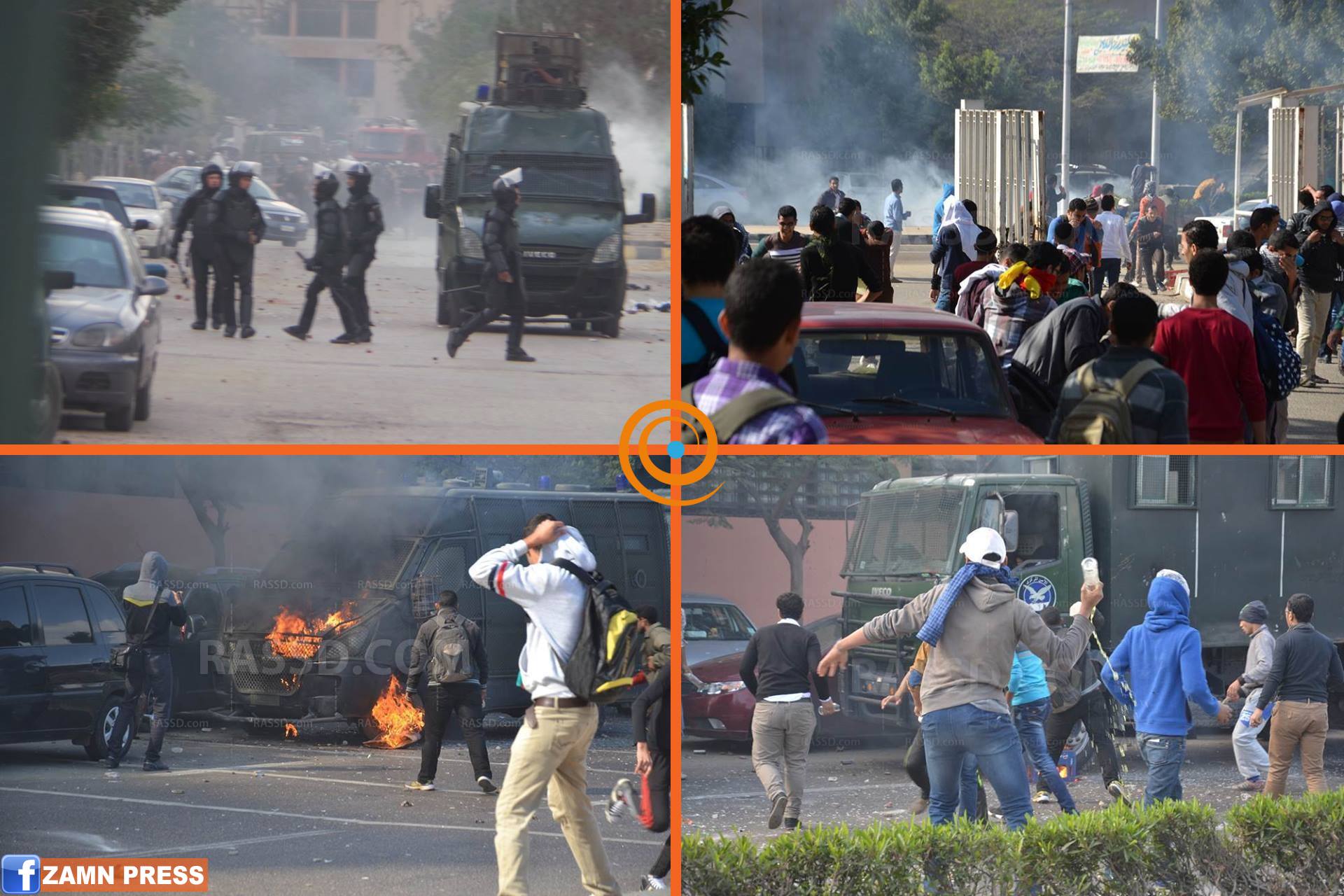 ورشق طلاب "الإخوان" قوات الأمن بالحجارة، بينما ردت الشرطة بقنابل الغاز المسيل للدموع، وطلقات الخرطوش، وأصيب العشرات من الطلاب جراء الاشتباكات.