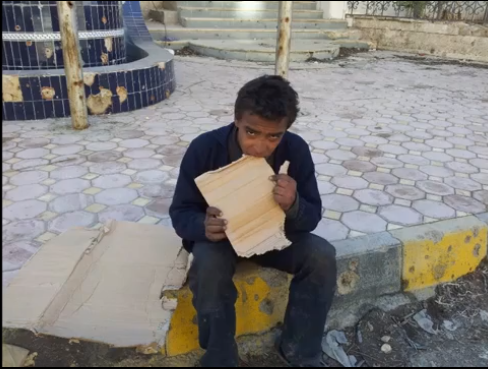 بالفيديو: طفل سوري يأكل قطع الكرتون ليسد جوعه