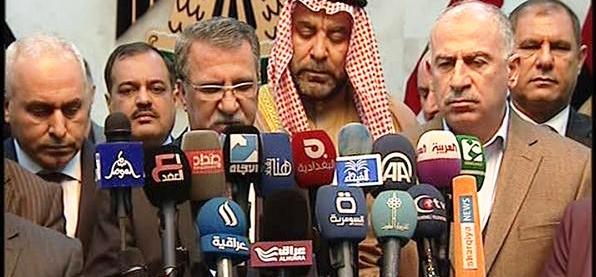 وقال الناطق باسم ائتلاف "متحدون" ظافر العاني، في بيان تلاه خلال مؤتمر صحفي ونقلته شبكة "سكاي نيوز عربية" إن "الهجوم العسكري على الأنبار وافتعاله الحرب الطائفية مصلحة شخصية لـ(رئيس الوزراء نوري) المالكي".
