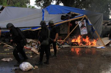 وأضاف: سياق عملية الفض في الساعات الأولى أشار إلى أن الاشتباكات كانت تسير في إطارها المعتاد حتى الساعة 11 حتى بادرت عناصر مسلحة بإطلاق النيران على أحد الضباط الذي كان يمسك بمكبر صوت مما أدى إلى سقوطه قتيلا مما أدى إلى اندلاع الاشتباكات.