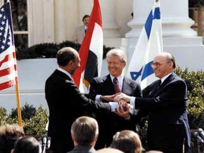 في 26 اذار، يوم التوقيع على الاتفاق عقد لقاء بين كارتر وبيغن وقال كارتر: ‘اليوم هو يوم تاريخي’ واضاف: ‘ما حققناه حتى الان ليس أقل من معجزة. ويد الرب كانت في ما تحقق حتى الان’.