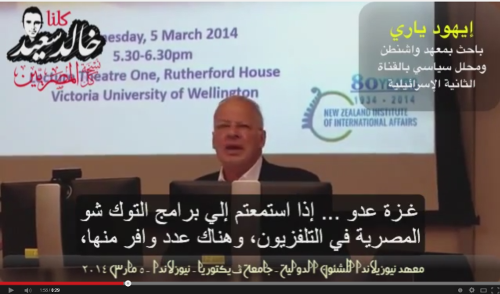 وجاء ذلك خلال كلمة له في معهد نيوزيلاند للشؤون الدولية في جامعة فكتوريا، (5 آذار/ مارس 2014)، وتداول ناشطون فيديو يعرض كلمته على مواقع التواصل الاجتماعي، مؤخراً.