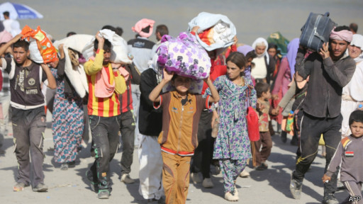 وتقول الأمم المتحدة إن عشرات الآلاف، أغلبهم من الأقليات الدينية وبينهم الأيزيديون، عالقون في جبل سنجار بعد أن اضطروا إلى النزوح من منازلهم.