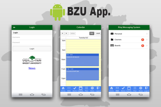 زمن برس، فلسطين: أطلقت جامعة بيرزيت يوم أمس تطبيقها للهواتف المحمولة -BZU App-، ليكون نقطة تواصل مع مجتمع الجامعة، حيث يوفر وصولاً سريعاً لأخبار الجامعة، وطلبتها، ويوفر معلومات تهم الطالب من رسائل، ومعلومات عن المساقات، والعلامات، وبرنامج المحاضرات، والخطة الدراسية للطالب. كما يوفر المعلومات بطريقة سريعة، بحيث تصل المعلومات الطالب حيثما كان.