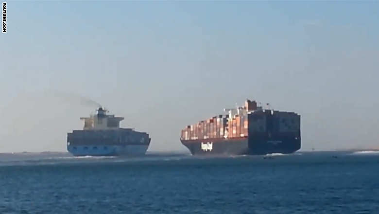 فيديو: تصادم بين سفينتي حاويات يوقف حركة الملاحة بقناة السويس