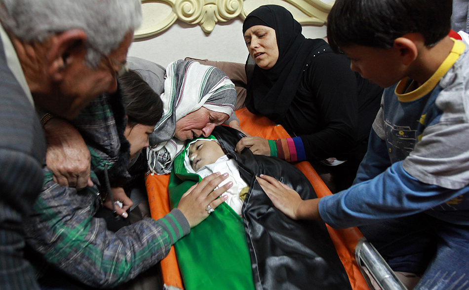 زمن برس، فلسطين: شيع آلاف المواطنين جثمان الشهيدة الطفلة إيناس دار خليل (4 سنوات) في قرية سنجل شمال رام الله.